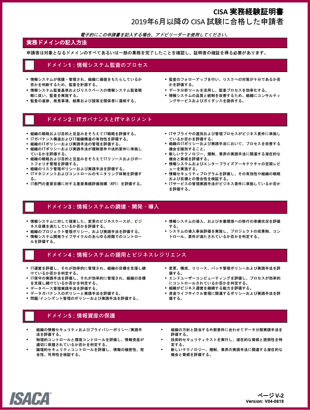 該当するドメインにチェックを入れ、業務内容を把握している上司の承認を受ければ、完了です。申請をしてから、約8週間後に認定を受け、更に約4週間後に認定証がお手元に届きます。実務経験証明書は、日本語で作成いただけます。
