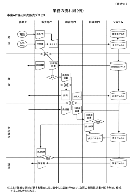 参考例は、受注・出荷・売上計上・請求についての業務フローを詳しく記載するようになっており、手順を理解しやすくなります。