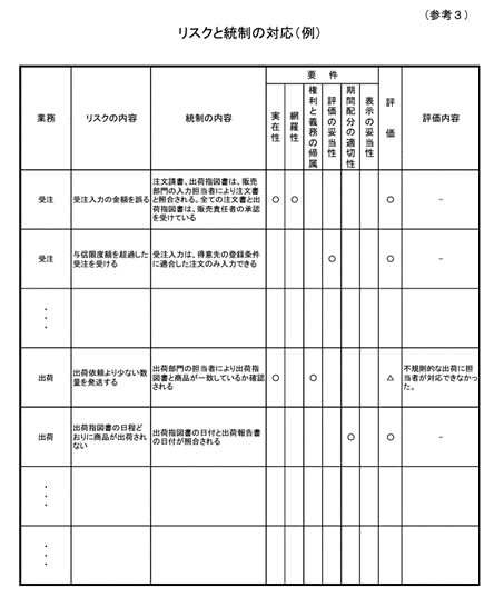 参照:金融庁企業会計審議会「財務報告に係る内部統制の評価及び監査の基準並びに財務報告に係る内部統制の評価及び監査に関する実施基準の改訂について(意見書)」