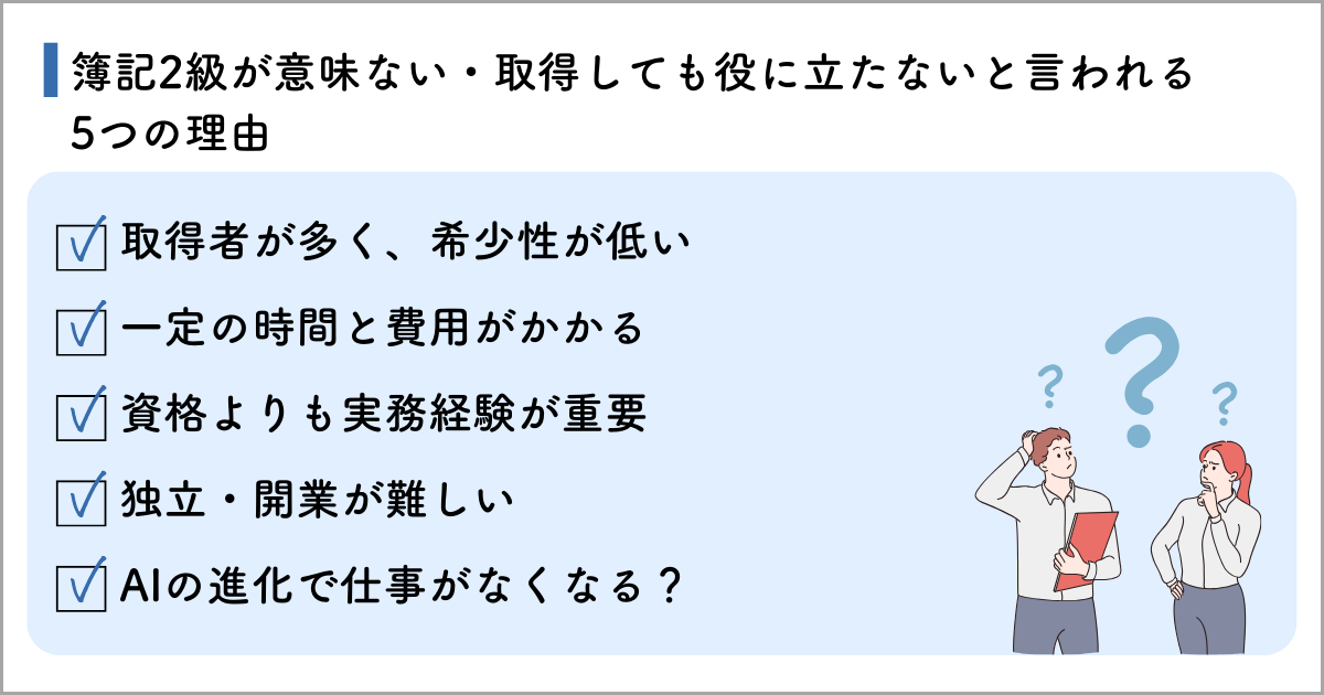 簿記2級が「意味がない」と言われる理由には、一体どのようなものがあるでしょうか。