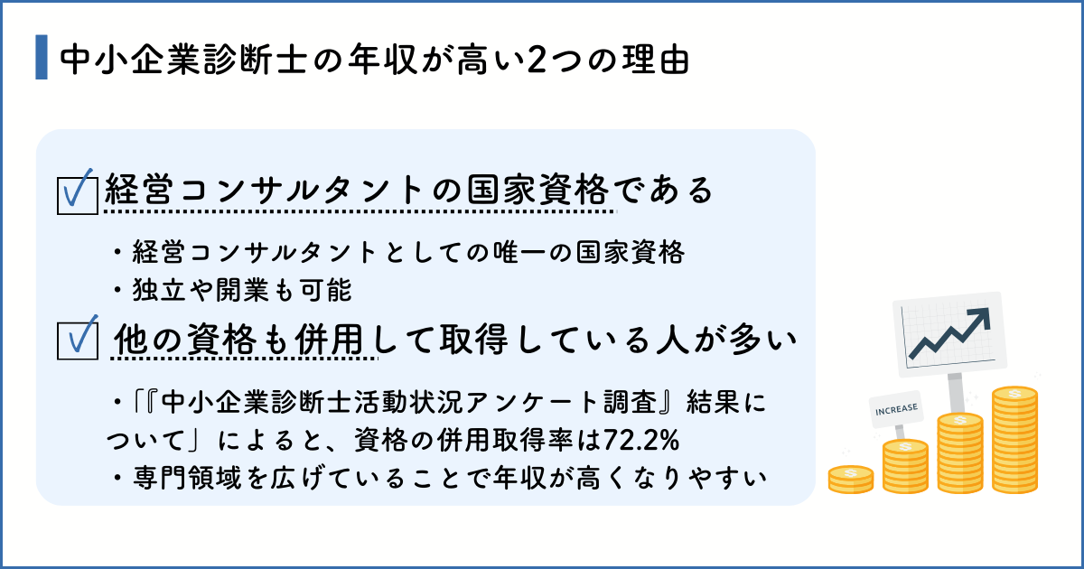 ここからは、中小企業診断士の年収が高い傾向にある2つの理由を見ていきましょう。