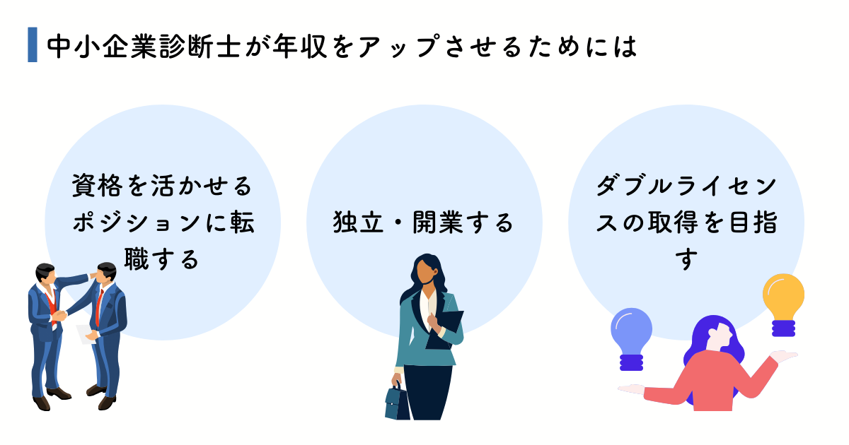中小企業診断士が年収をアップさせる方法は次の3つの方法が挙げられます。