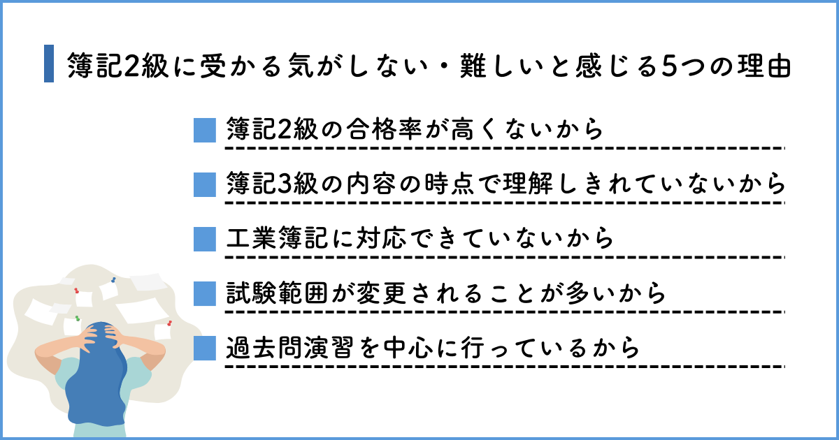 簿記2級に受かる気がしない・難しいと感じる5つの理由