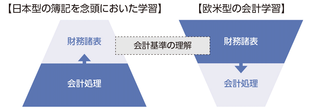 一方、欧米型の会計教育では、「財務諸表」の利用者の視点で会計を学習することに重点が置かれています。