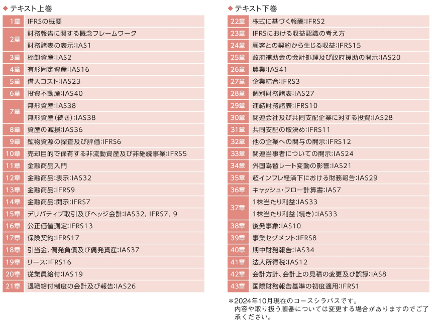 本プログラムでは、フレームワークおよびIFRSの「基準書」を網羅的に学習します。