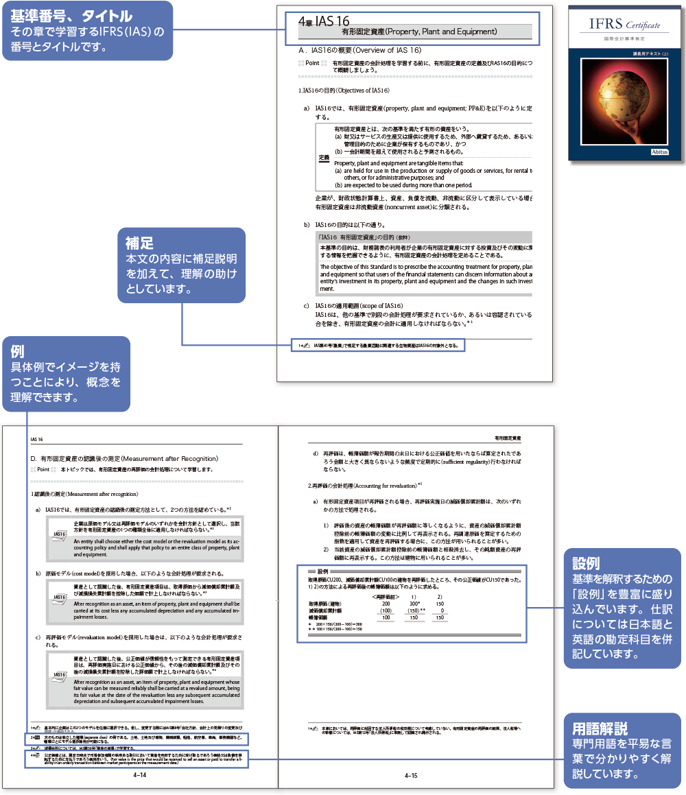 原則主義に基づくIFRSを理解するためには、日本語で基礎となる概念を正確に理解することが有効です。しかし実務に適用する場合は「基準」の趣旨を英語の原文で確認するプロセスも重要になります。本プログラムでは、日本語を中心に講義・解説しますが、重要項目については英文も併記しています。テキストはICAEW®が認定するIFRS検定試験の合格に必要な論点解説だけでなく、豊富な設例掲載で一層理解度が深まります。講義とテキストで重要なポイントを学習し、後述のMCカードを活用することで、IFRS検定試験の合格を目指せます。もちろん、実務で必要な骨太の知識を身に付けることもできます。
