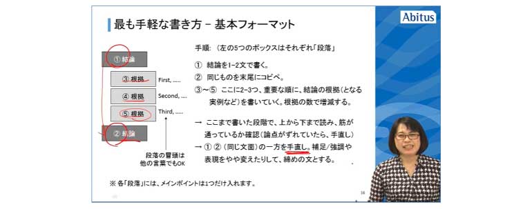 アカデミック・ライティングでは、卒業生が、基礎・上級課程で実際に提出したエッセイを題材として、基本的な約束事や英語エッセイ作成のコツを解説します。