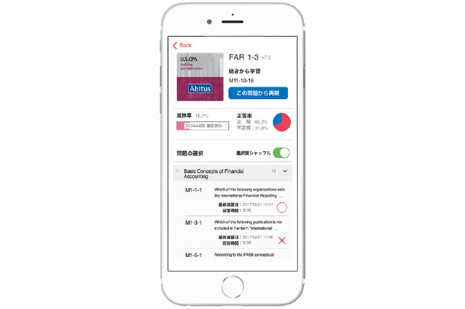 USCPA試験の50%を占めるMC(4択問題)のアプリを開発しました。スマートフォン、タブレットにダウンロードすれば、通勤電車の中、出張の飛行機内など、いつでも手軽に演習できます。