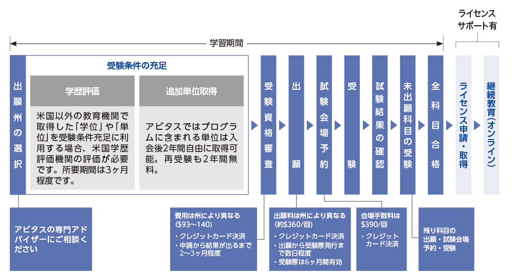 大学在学中や高卒・短大卒の方でも受験可能な州もあります。
