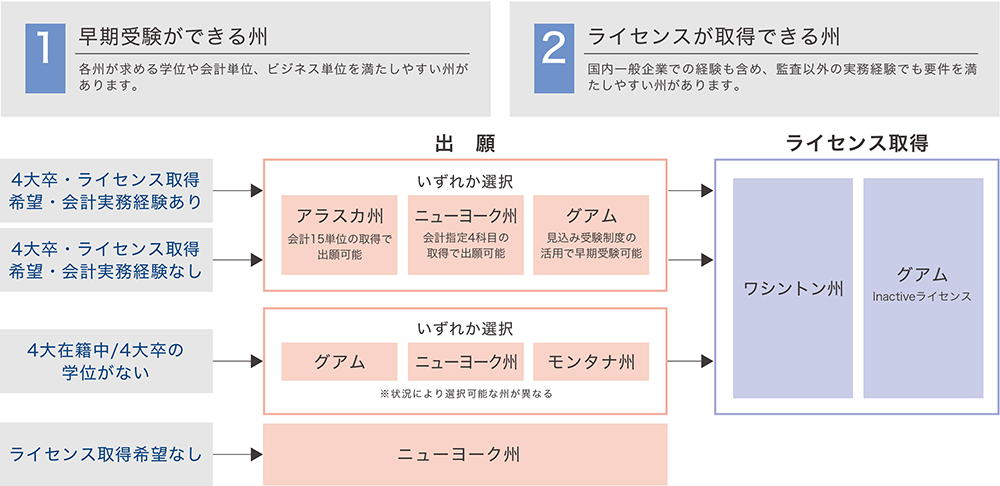 USCPA試験は全米統一の試験ですが、受験資格は、出願先の州により異なります。